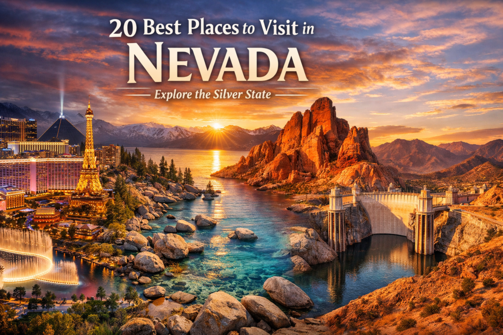 Nevada is far more than glittering casinos and neon lights. Known as the Silver State, Nevada offers dramatic deserts, breathtaking national parks, historic towns, alpine lakes, and vibrant cities that attract millions of travelers every year. From the dazzling energy of Las Vegas to the peaceful beauty of Lake Tahoe, Nevada delivers a perfect blend of adventure, relaxation, and culture.